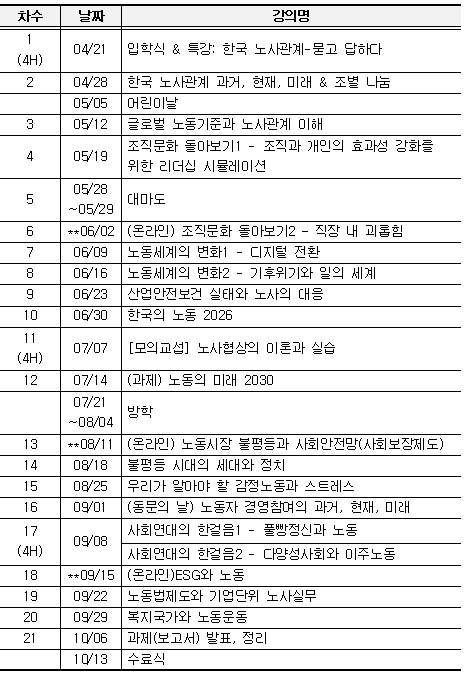 ◦ 노동의 미래를 여는 노사관계 전문가과정