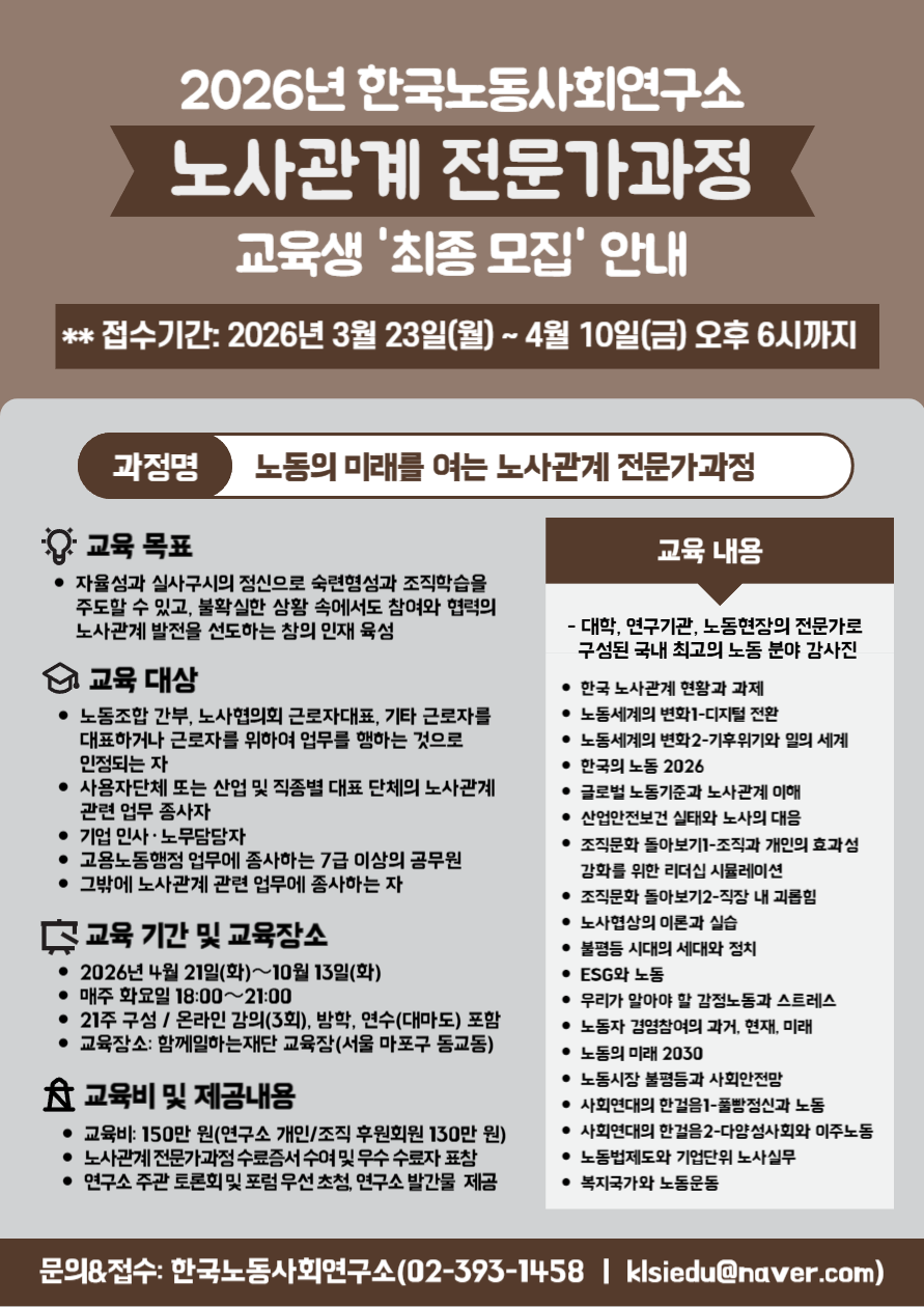 2026년도 <노사관계 전문가과정> 교육생 최종 모집 안내